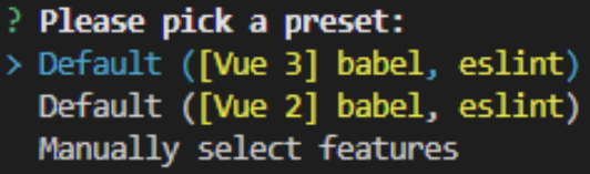 4. Vue 버전을 선택하는 메세지가 뜨는데 저는 Vue3를 사용할 것이기 때문에 Vue3를 골랐습니다.
