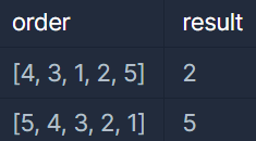 택배 기사님이 원하는 상자 순서를 나타내는 정수 배열 order가 주어졌을 때, 영재가 몇 개의 상자를 실을 수 있는지 return 하는 solution 함수를 완성하세요.