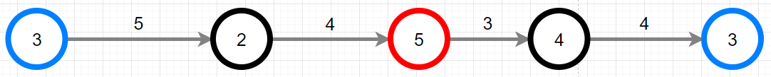 등산코스를 3-2-5-4-3 과 같이 정했을 때의 이동경로를 그림으로 나타내면 아래와 같습니다.
