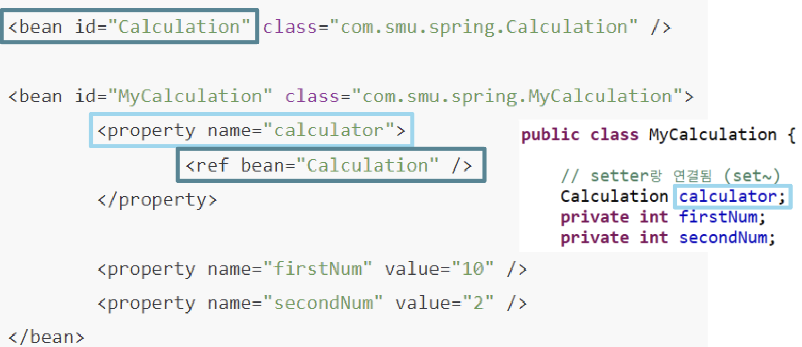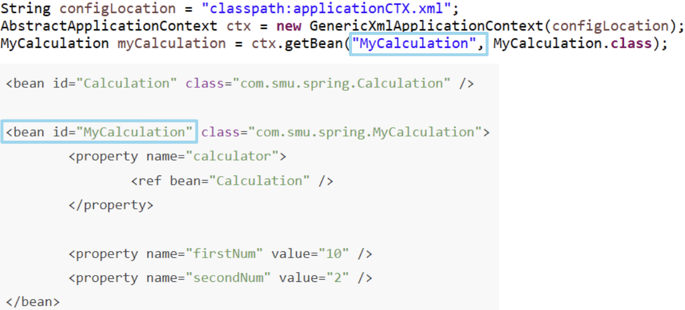<bean id="MyCalculation" class="com.smu.spring.MyCalculation">