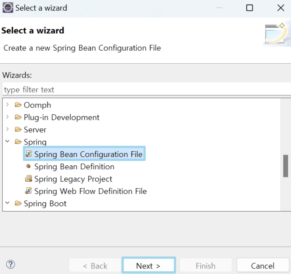 ✔️ src > main > resource에 applicationCTX.xml 파일을 생성합니다.