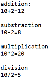 System.out.println(f + "+" + s + "=" + result + "\n");