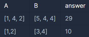 예를 들어 A = [1, 4, 2] , B = [5, 4, 4] 라면